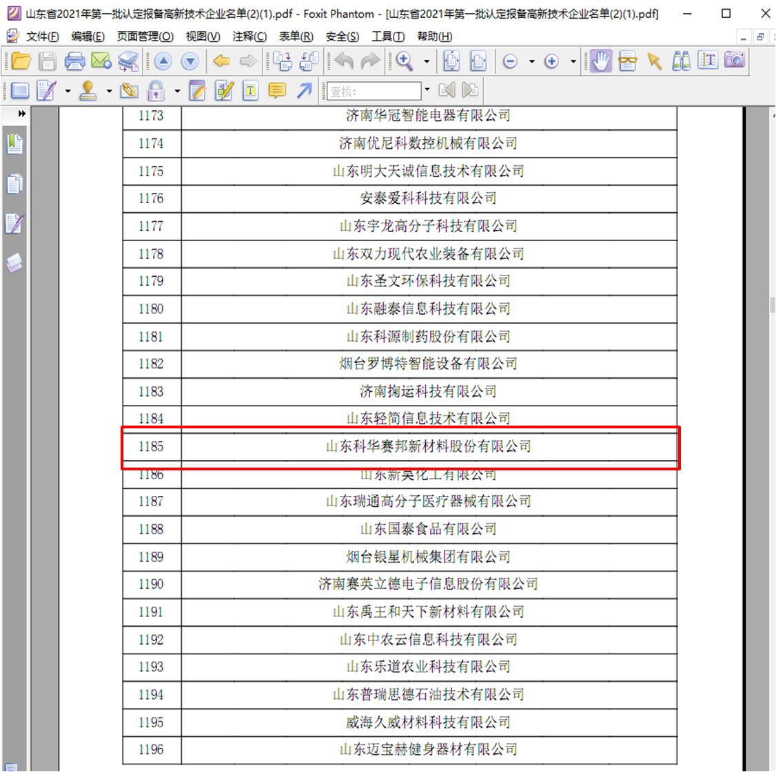 2021年12月7日,高新技术企业认定管理工作网“关于对山东省2021年认定的第一批高新技术企业进行备案公示的通知“,科华赛邦作为一家集配方研究——产品试制——性能检测——试用运行——产业应用于一体,为客户提供整体解决方案的创新型技术企业,荣登榜单之中,这标志着我公司在研发和创新方面得到肯定与认可,由此正式迈入高新技术企业行列!