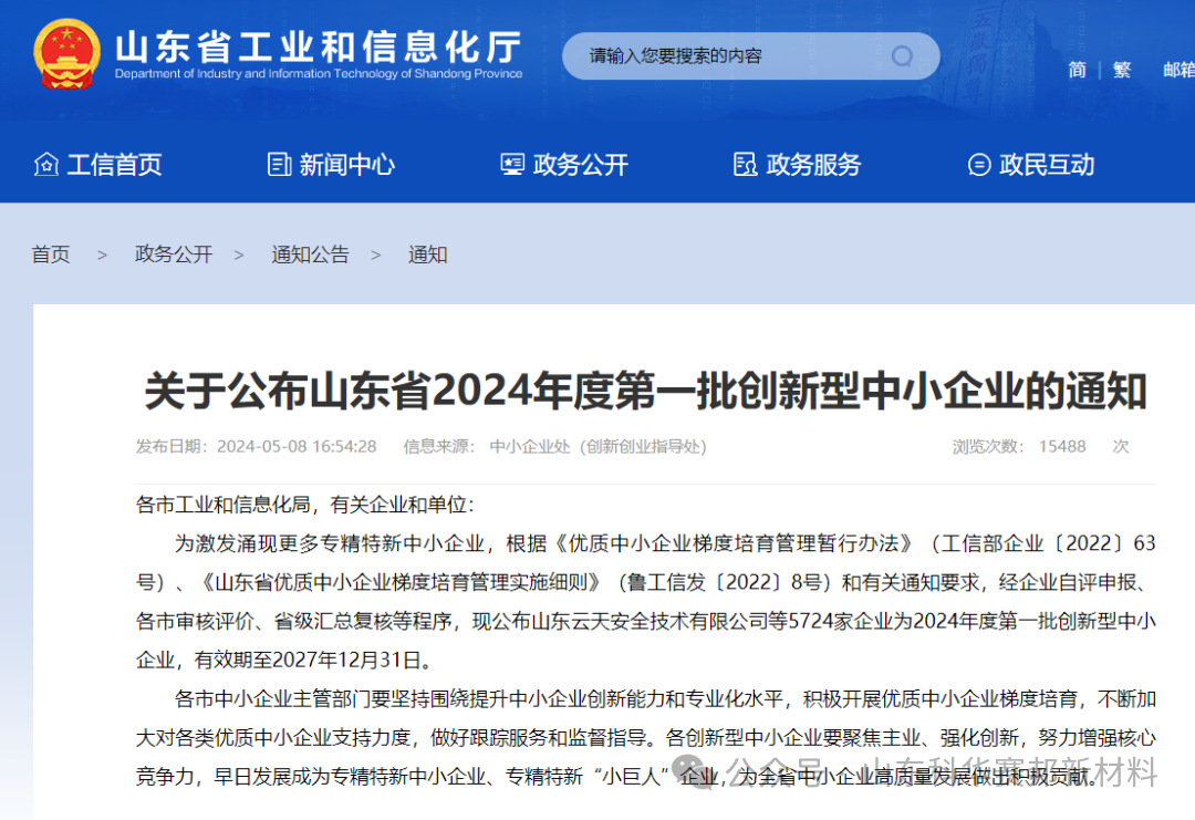 根据《优质中小企业梯度培育管理暂行办法》(工信部企业〔2022〕63号)、《山东省优质中小企业梯度培育管理实施细则》(鲁工信发〔2022〕8号)和《关于开展2024年度专精特新中小企业培育认定和复核工作的通知》等文件精神,省工业和信息化厅组织开展了2024年度专精特新中小企业培育认定工作。